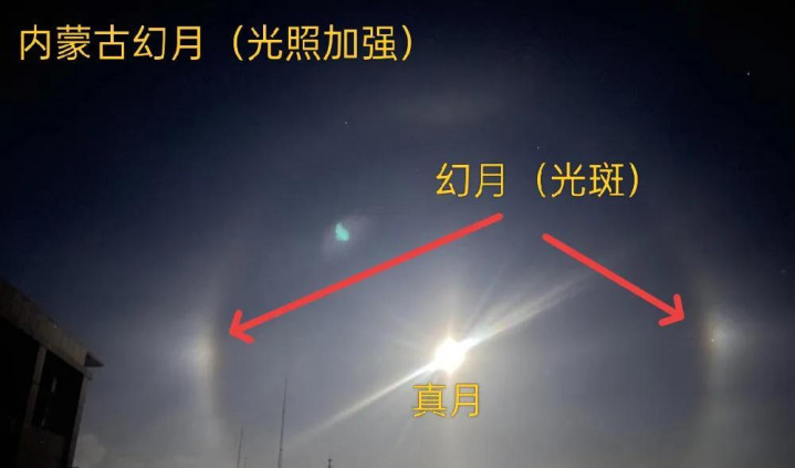 这里就教大家一招,想划清真假幻月特别简单。你睁开眼直接看,只有一个月亮,拍照却能拍出多个,那十有八九是玻璃的锅。再者,看分布,对称且暗的是正经幻月,集中一边且亮度几乎一样的,都可以打入“造假”名单。